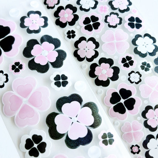 [borahstudio] Black Pink Clover Button Deco Sticker